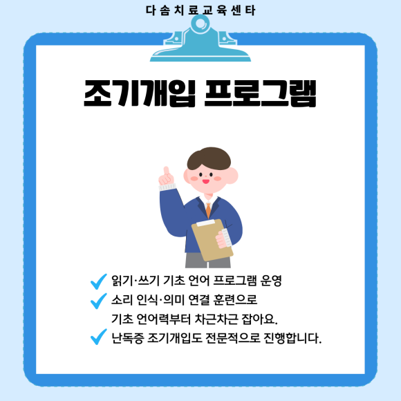 난독증 조기 개입 프로그램도 전문적으로 운영하고 있습니다.